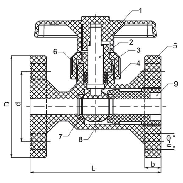 دریچه توپی بدنه FRPP/RPP DN15–DN100 شیر توپی فلدار پلاستیکی مستقیم با بالا برای استفاده از آب صنعتی استاندارد ANSI