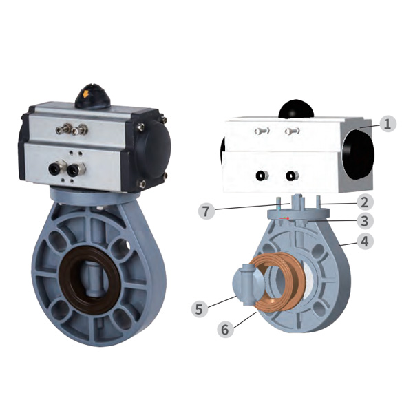 شیر پروانه ای اتوماتیک پنوماتیک PVC-C، مهر و موم مرکزی، مهر و موم نرم، DN32-1000، شیر پروانه ای پلاستیکی صنعتی و خانگی