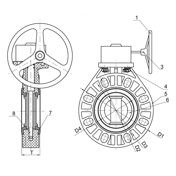 PVDF Worm Gear Butterfly Valve Manual Center Seal Soft Seal DN40–1000 اهرمی پلاستیکی صنعتی و مسکونی شیر استاندارد ANSI