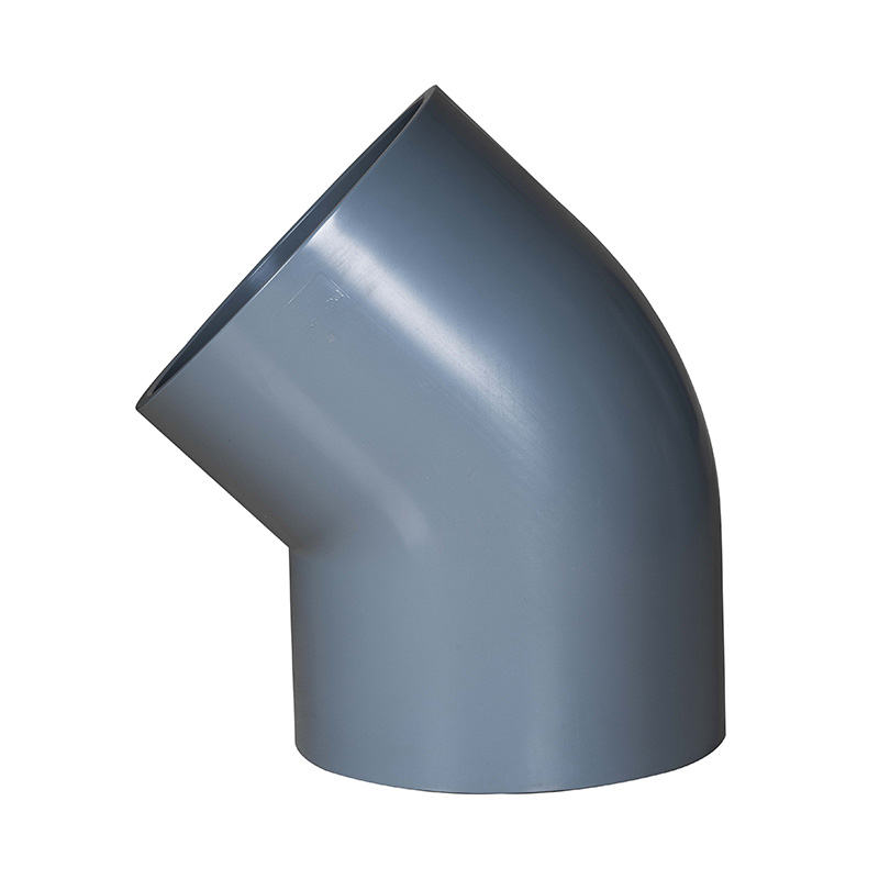 اتصالات لوله پلاستیکی با اندازه استاندارد حرفه ای DN15-DN600، PVC-C زانویی 45 درجه خاکستری روشن خاکستری بسیار بادوام، زانویی 45 درجه مطابق با PVC-C
