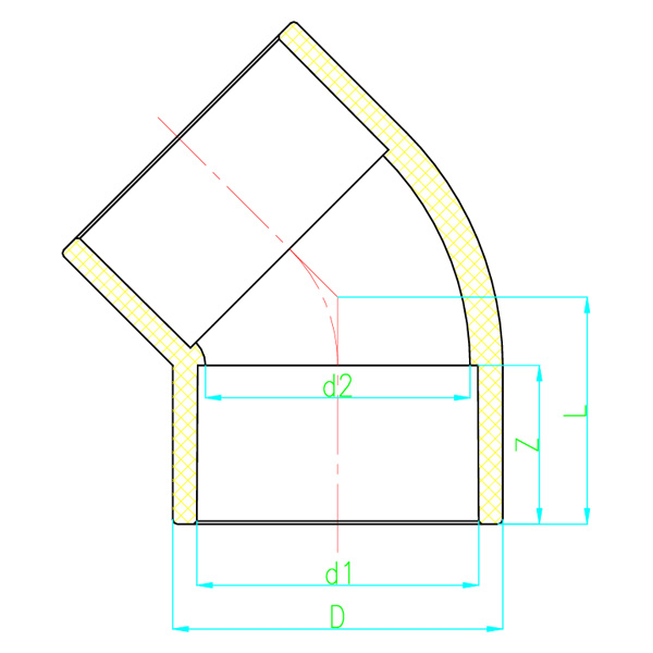 PVC-C 45 درجه زانویی DN15-600 استاندارد استاندارد