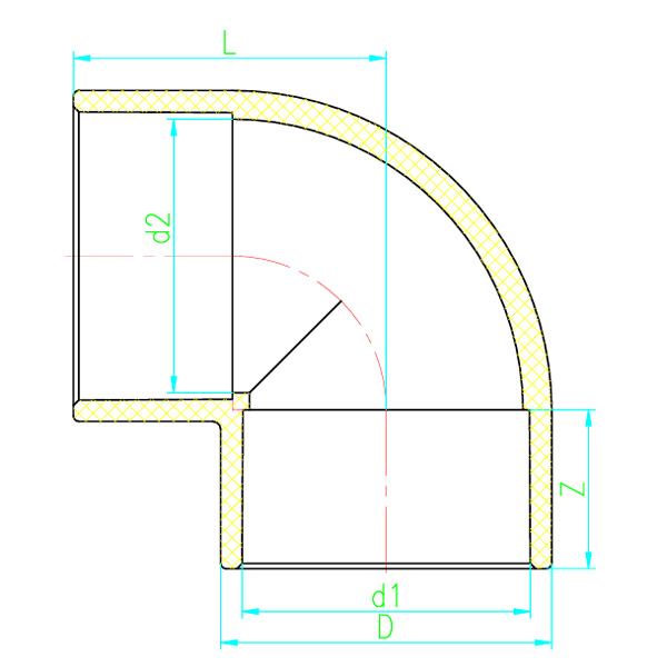 اتصالات لوله پلاستیکی با فشار کاری 1.0-1.6 مگاپاسکال PVC-C 90 درجه زانویی شکل PVC-C خاکستری روشن برای صنایع شیمیایی و آب