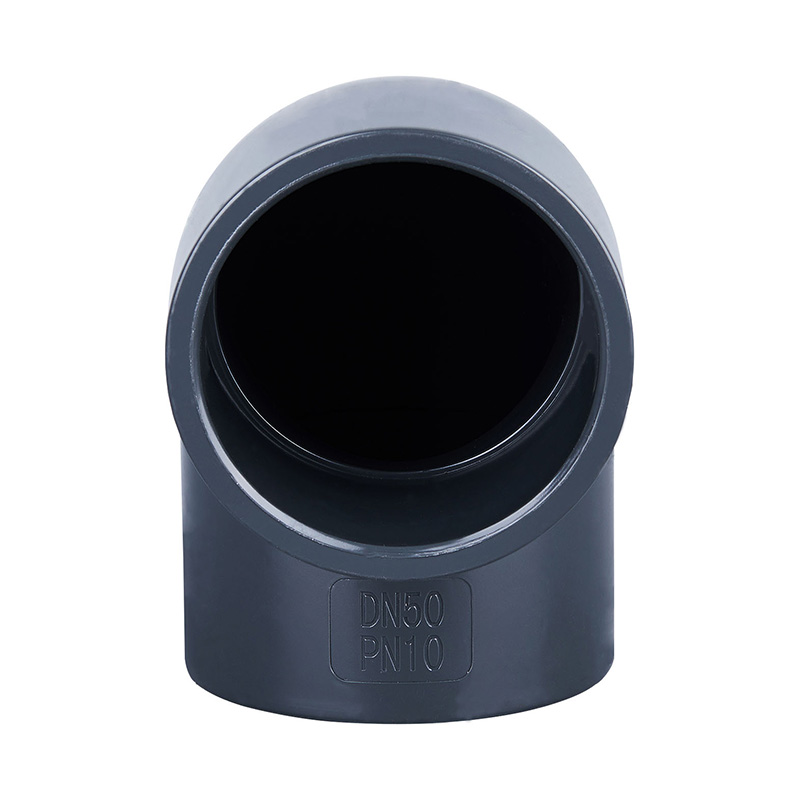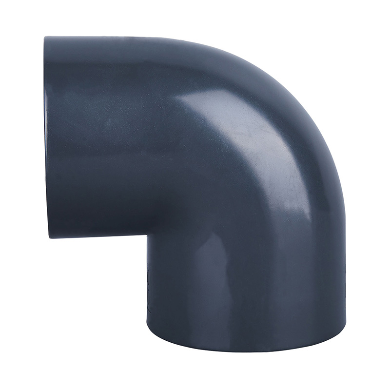 PVC-U خاکستری تیره با کیفیت بالا زانوی 90 درجه، برابر، DN15-DN600، فشار کاری 1.0-1.6MPa برای صنایع شیمیایی و آب، اتصالات لوله های پلاستیکی، استاندارد ANSI SCH80