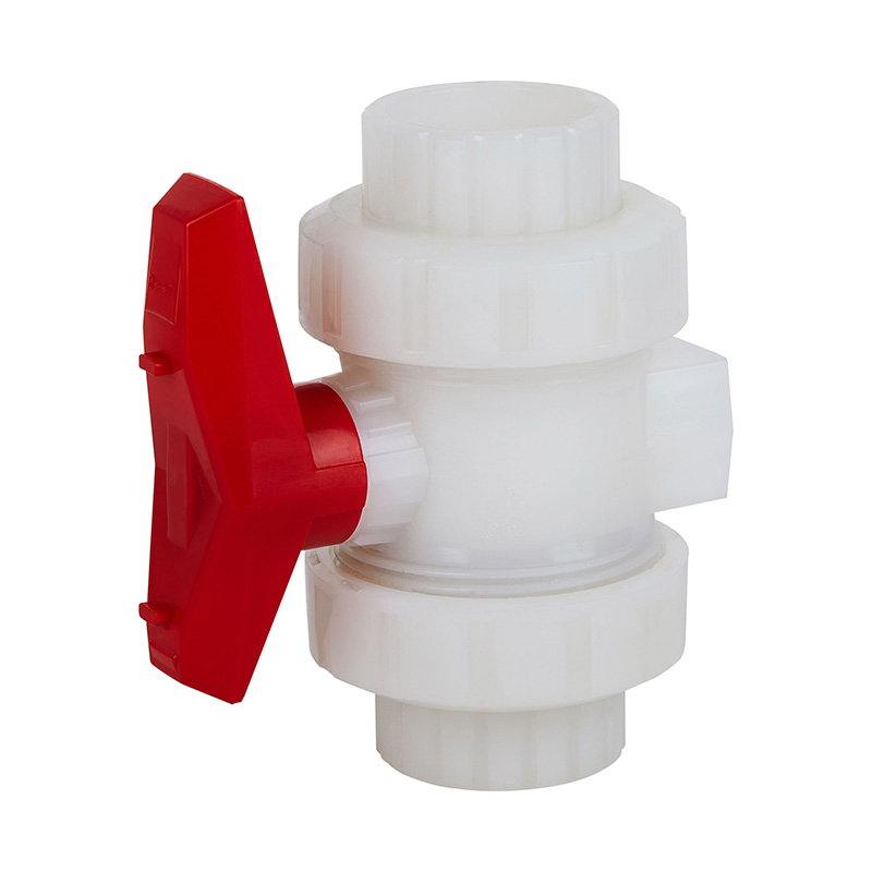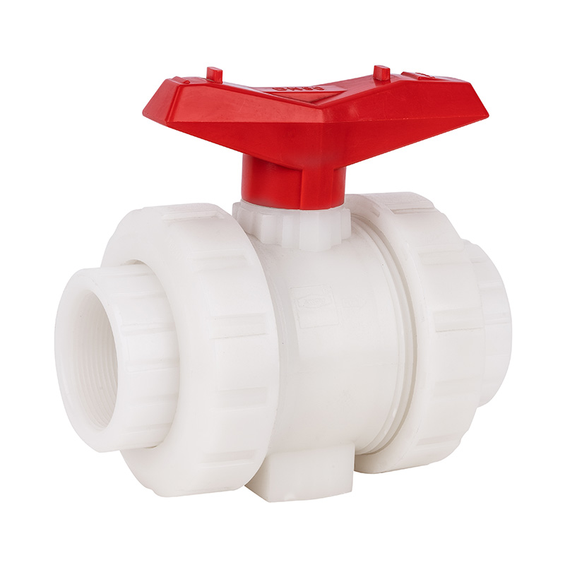 سفید 20mm-110mm درجه حرارت بالا فوق العاده بادوام استاندارد PVDF Double Union Socket Valve Ball 1.0-1.6Mpa ISO STD استاندارد شیر پلاستیکی صنعت