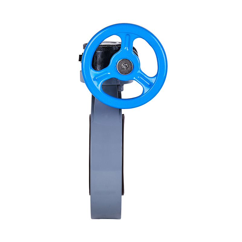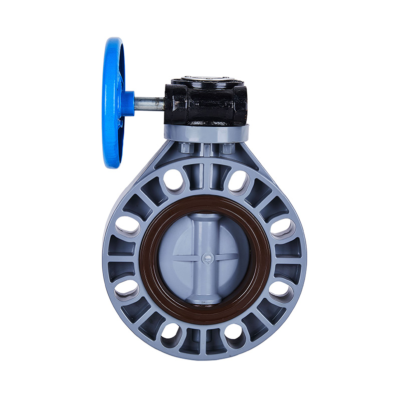 شیر پروانه ای با ساقه صاف دنده کرم پی وی سی سی با نام تجاری جدید، خاکستری، DIN، JIS، استاندارد ANSI، شیر پلاستیکی فلنج دار 4 اینچی استاندارد ANSI